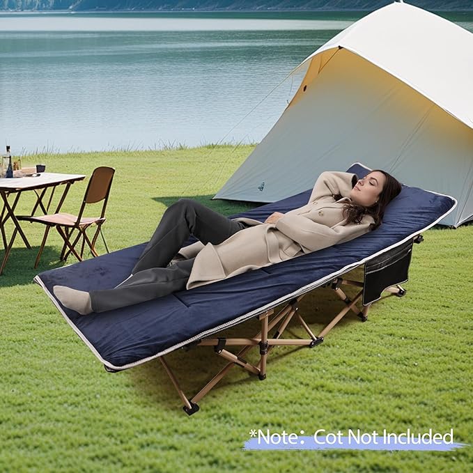 • Perfect Companion with Camping Cot: 2 elastic straps and a wide corner sleeve on the backside of the pad ensure the camping cot mattress stay put on the cot