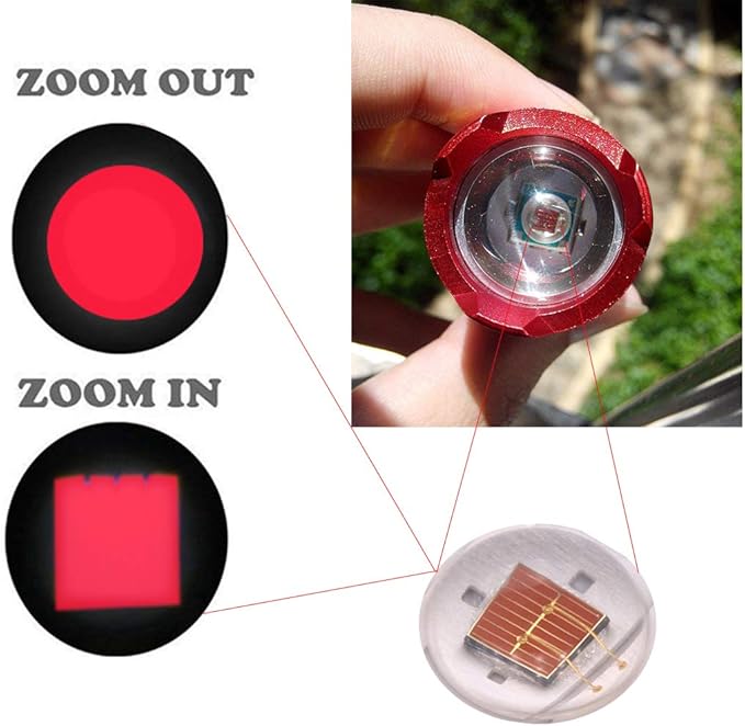 • This red flashlight is also specially designed for observers and hunters, night observation or hunting is effective but hard to find the target, if you use the white light, animals will hide from you, you are not able to watch their natural behavior at night, so, this flashlight red light is very helpful to find the animals in the dark, help you watching turtle, and the reptiles, also this tactical flashlight red light can help you hunt the games like hogs, fox