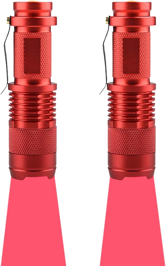 (Pack of 2 Red LED Flashlight, 3 Modes Red Flashlight, Red Light Flashlight Red LED Red Light Torch for Astronomy, Aviation, Night Observation-2PCS