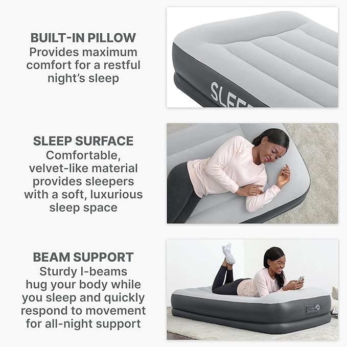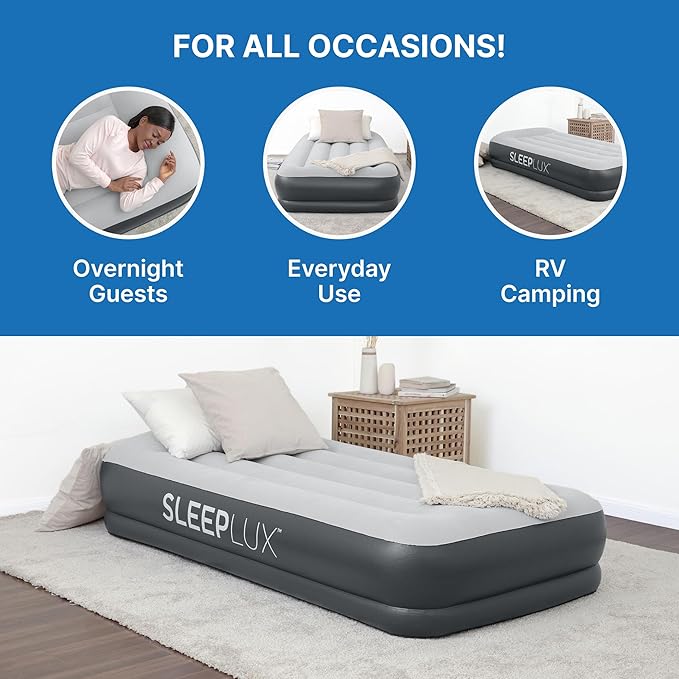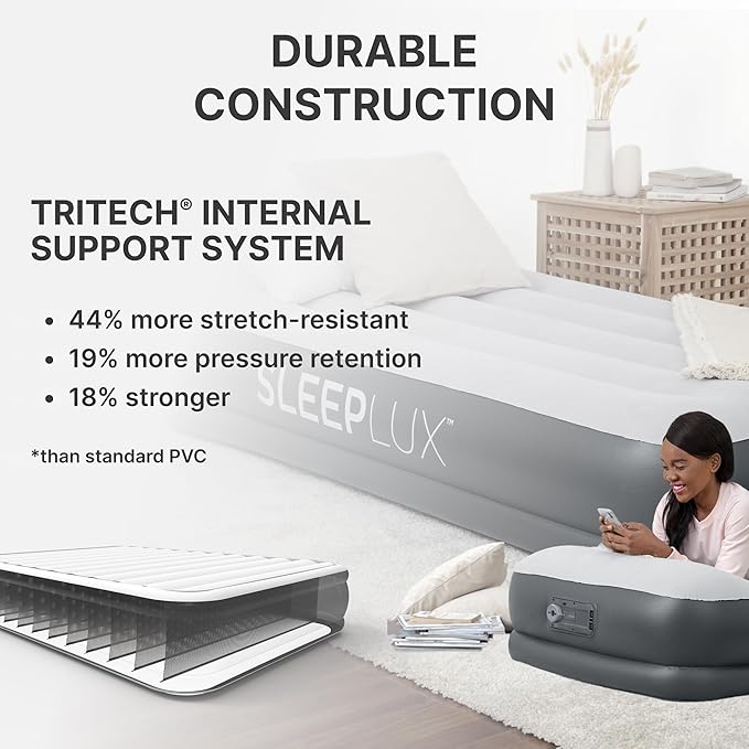 • GET A GOOD NIGHT'S REST: SleepLux's twin air mattress is designed with proprietary I-Beam construction. Composed of 3 durable layers, this inflatable mattress will keep its form and stay firm throughout the whole night.