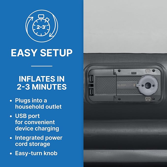 SleepLux Durable Inflatable Air Mattress with Built-in Pump, Pillow and USB Charger