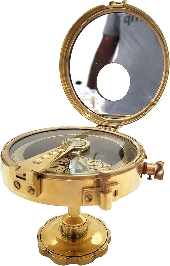 • Material - Solid Brass and Glass , Weight:- 760 gram, Color:- Shiny Brass, It is Ship Accessory, Fully Functional Gimbaled Compass |