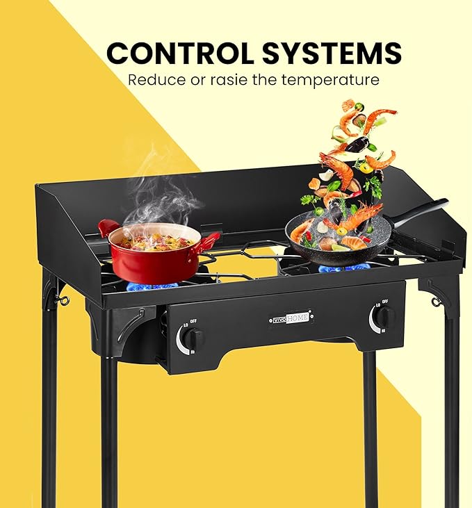 • GREAT OUTDOOR COOKING BUDDY - With 2 powerful burners to work with, this burner stove makes camp cooking easily and works well for outside if you cook smelly food and don't want the smell to remain in your house, so having this would make deep frying stuff much cleaner outside; Perfect for outdoor cooking, camping and parties