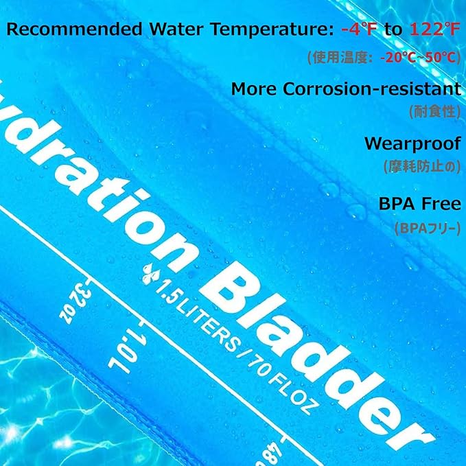 • 🏃‍♀️ FOOD GRADE QUALITY: The hydration bladder is made of food grade material TPU, pressure-tolerant and wear-proof. The hydration bladder is BPA free, odorless, non-toxic, safe for drinking