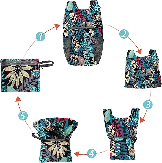 • Convenient and Lightweight: This hiking daypack is easy to fold and fit into an ultra-compact pouch. It's convenient to pack in your suitcase, purse, or car as a travel backpack without taking up too much space. Unfold size: 8.27x6.30x13 inches, Ultralight weight: 4.59oz