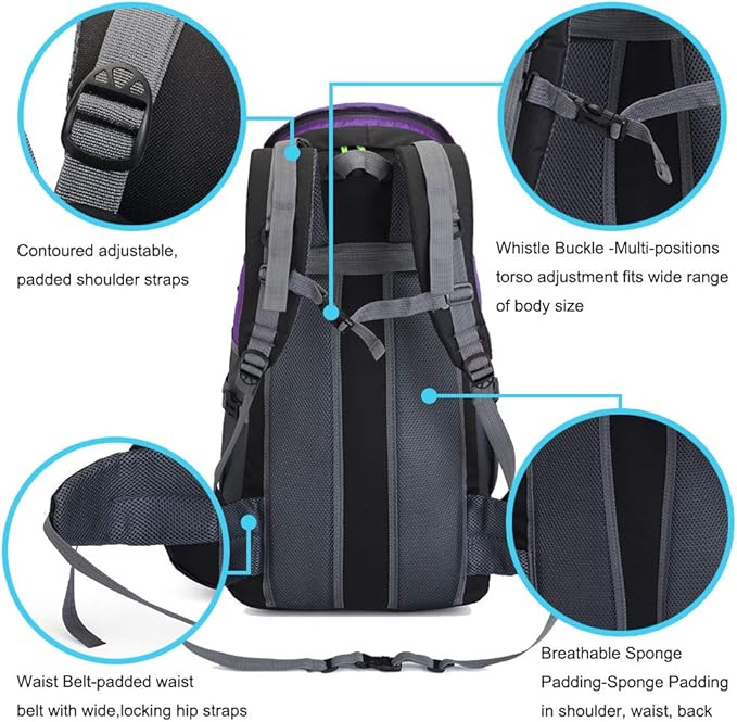 • √ EXCEPTIONAL COMFORT & FIT - Experience unmatched carrying comfort with our camping backpack, featuring adjustable widened straps, enhanced breathability, and padded cushioning designed for the ultimate hiking experience