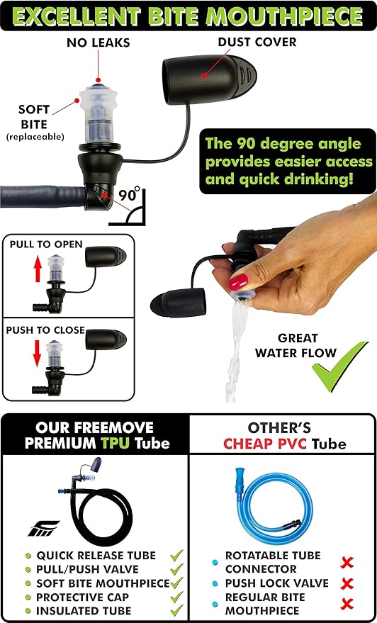 • You´ll Like Everything About This 3 Liter Water Bladder, Very Strong, Well Designed and Everything Fits Together Nicely, the Quick Disconnects Eliminate the Need to Screw Connectors Together, the Bite Valve Shuts Off And the Cap Keeps Water From Dripping, and the Insulated Hose Keeps Water Cool