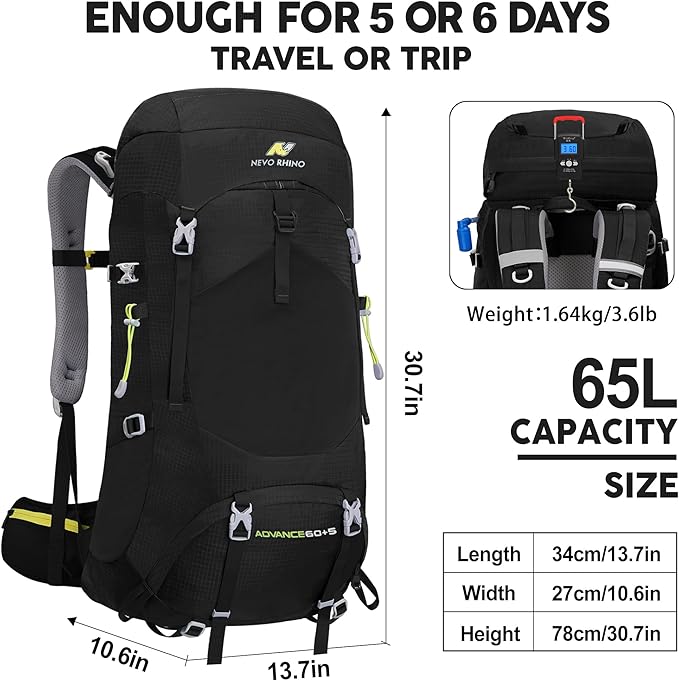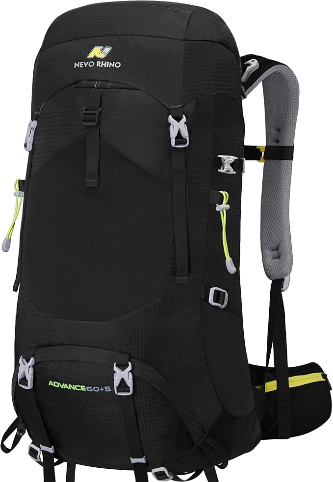 N NEVO RHINO Internal Frame Hiking Backpack 50/60/65/70/80L, Mountain Climbing Camping Backpack Daypack Waterproof Rain Cover