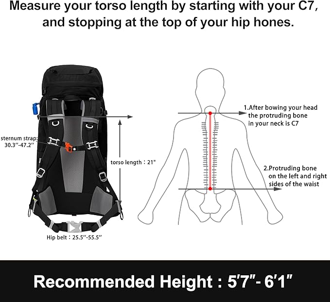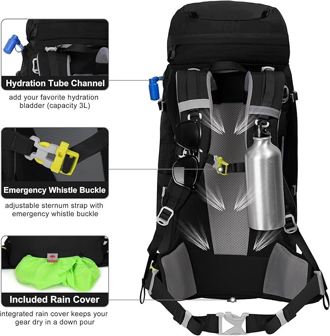 • Breathable System: The hiking bag is well constructed, the heat could quickly spread out, avoiding the embarrassment of sweat, also it's more comfortable for your back, Ergonomically designed semi-circle hollow provides head comfort even when camping backpack is completely full. Good for men women.