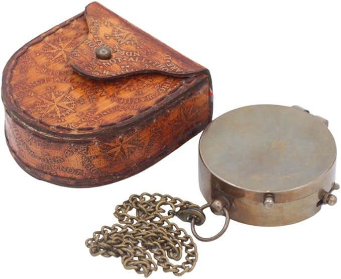 • BEAUTIFULLY CRAFTED - Antique brass compass is corrosion resist, packed in a hand stitched imprinted Leather Storage case & a Chain with Engraved Quote "So you can always be able to find your way home to me." Under the Tough Glass Cover Is A Beautiful, Detailed Brass Compass with Our Brand Name Roorkee Instruments India Which Will Help You Find and Navigate Your Way Home.