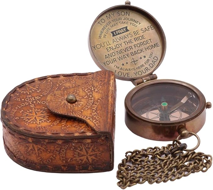 • MULTI PURPOSE PRODUCT: This compass provides precise directional assistance. It is ideal for camping, hiking, boating and other adventurous traveling. A beautiful quote is engraved "To my son wherever your journey in life may take you I pray you will always be safe enjoy the ride and never forget your way back home. I m always here for you" Love. Your Dad