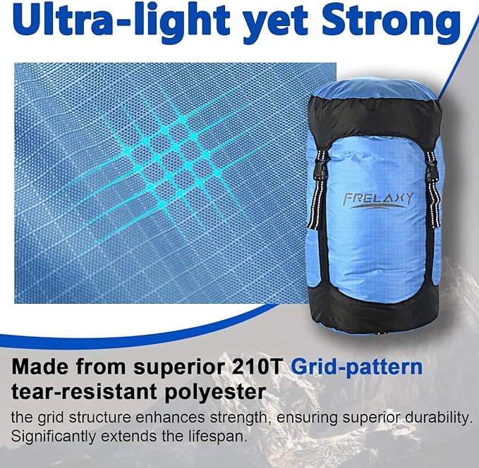 • Free up 40% additional space: Frelaxy Compression Stuff Sack is an incredibly simple and practical solution to space-saving, they will give you more space to pack what you need and give you an unprecedented portable experience.