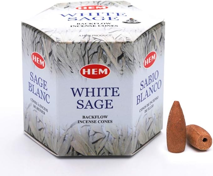 HEM White Sage Backflow Brown Incense Cones | Long Lasting Aroma for Positivity & Pure Air | Wood Powder | Aromatherapy for Stress Relief, Air Purifier & Cleansing | Gift Set - Pack of 40 Cones