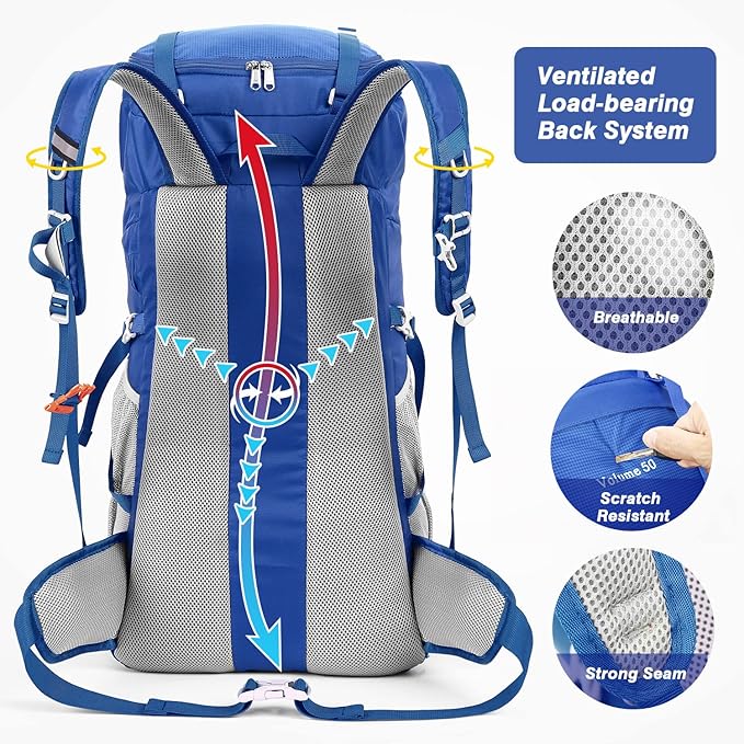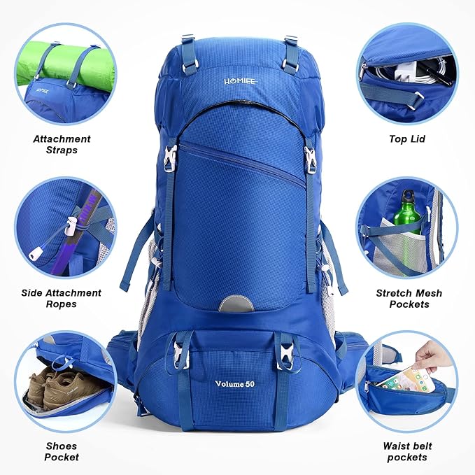 HOMIEE 50L Hiking Backpack Travel Bag Waterproof Camping Backpack with Rain Cover Lightweight Backpacking Backpack Rucksack