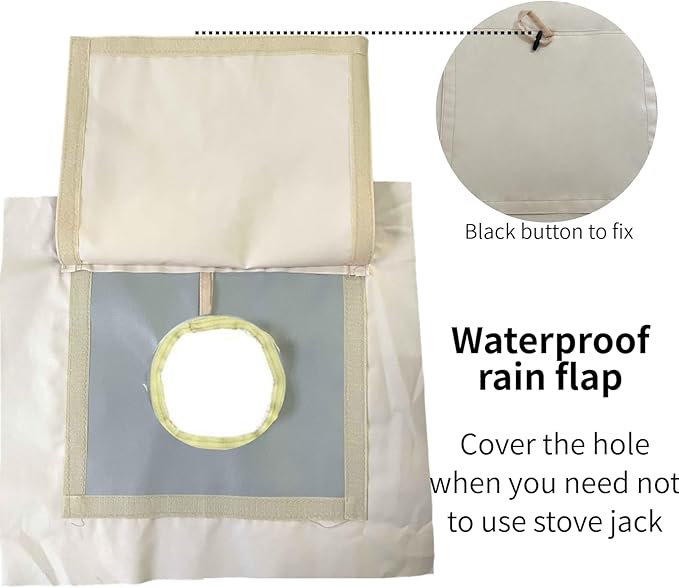 • WATERPROOF:Velcro design with rain flap closes securely. Durable and waterproof enough. Cover the hole when you do not want to use the stove. Note: This product is high temperature resistance but NOT fireproof. Always take caution when starting fires in the outdoors.