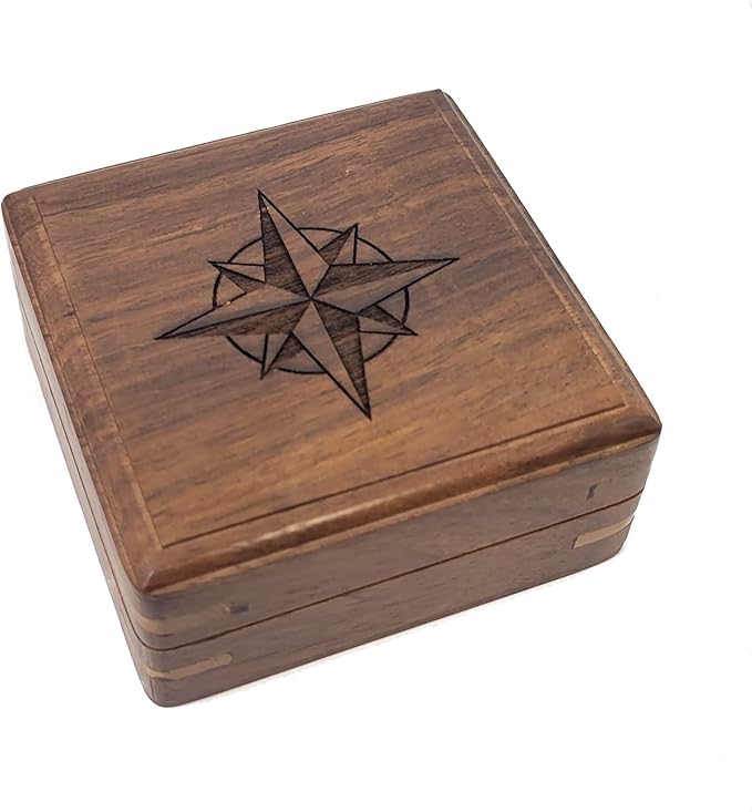 • PRODUCT FEATURES: Heavy solid antique brass casing with beveled glass. The compass rose is graduated in degrees and has a standard surveyor's 0 - 90 degree scale from North and South
