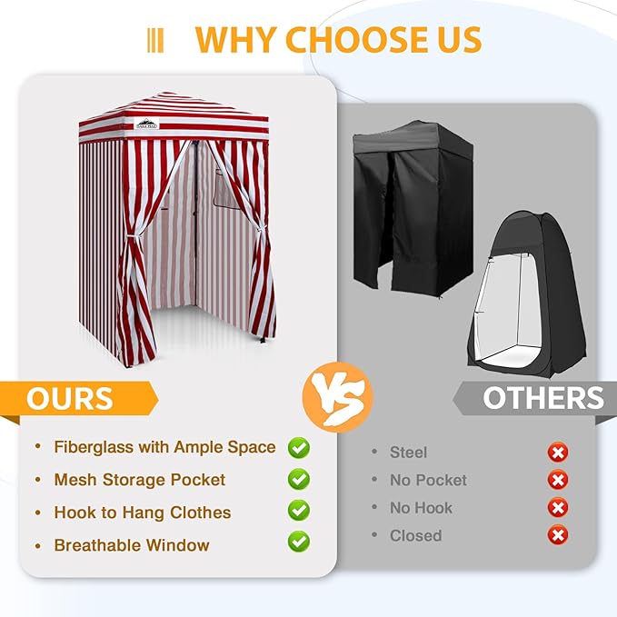 • INSTANT PRIVACY CHANGING ROOM: 4x4 changing tent for one or two people. Perfect as a changing room or sun cabana for outdoor activities: fashion show, photoshoot, camping, backyards, pool party or a showering tent, portable toilet shelter .