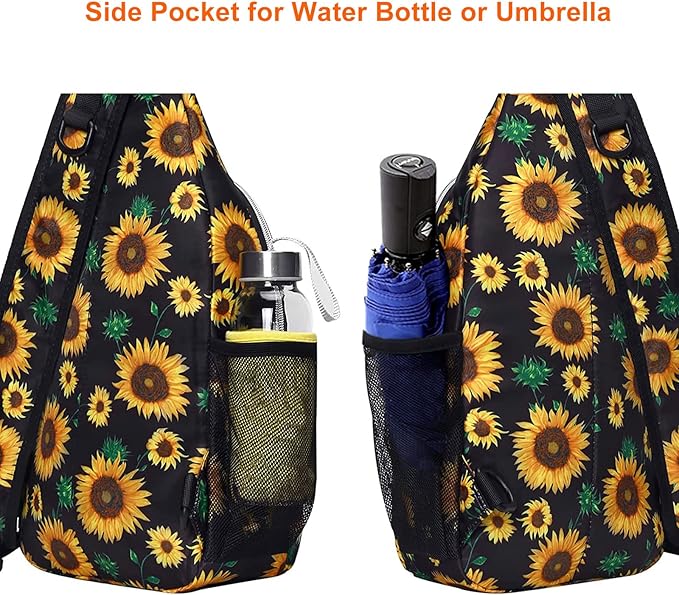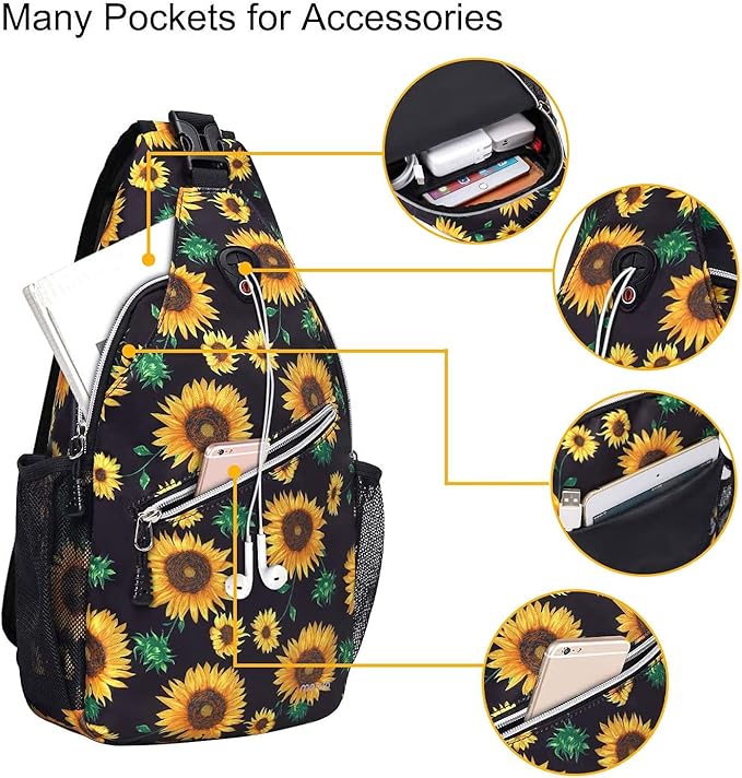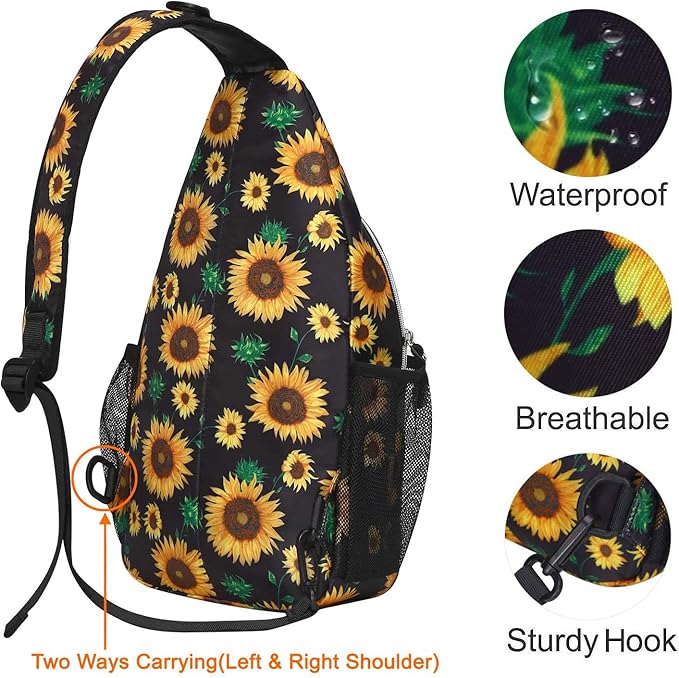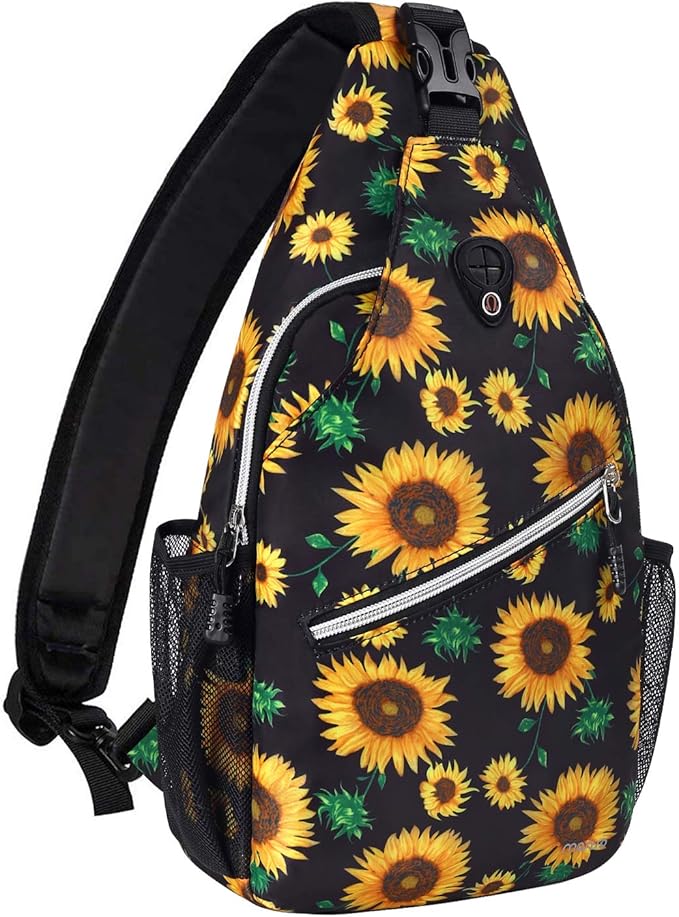 MOSISO Sling Backpack,Travel Hiking Daypack Sunflower Rope Crossbody Shoulder Bag