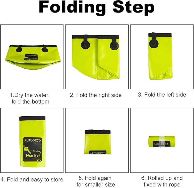 • Multi-purpose Fold Bucket: This AUTODECO Collapsible bucket is ideal for camping, fishing, traveling, boating, hiking, gardening, picnic, outdoor activities, daily use and car washing. It can be used as fish bucket, ice bucket, fruits and veggies basket, travel basin, coaches bucket for baseball, etc