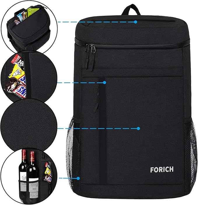 • 【LEAKPROOF COOLER BACKPACK】FORICH cooler backpack is made of high-density heat insulation materials and an internal polymer leak-proof lining to ensure anti-leakage and keep internal food or beverages hot and cold.