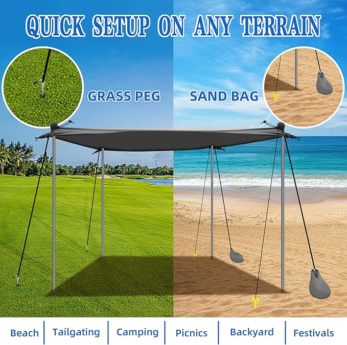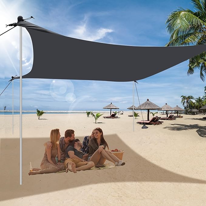 • BEACH SHADE CANOPY WIND SAIL:Our heavy-duty beach canopy is designed to withstand even the strongest winds. With sandbags included, you can enjoy your time at the beach without worrying about your tent flying away.