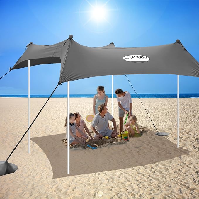 UMARDOO Family Beach Tent Canopy Sun Shade Portable 7×7FT, Large Wind Resistance Beach Sun Shelter Easy Setup with Packable Carry Bag for Outdoor Travel UPF 50+(Gray)