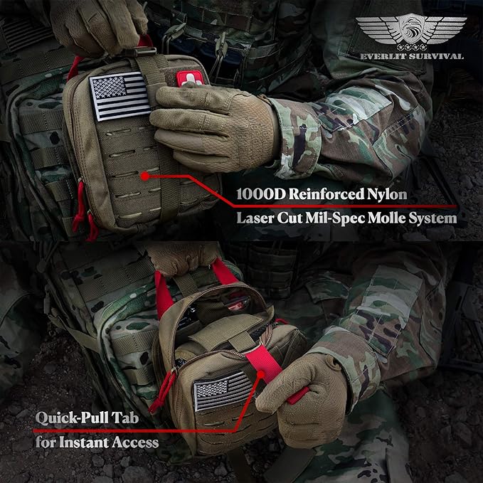 • ✅【Everlit Emergency Trauma Kit】: Uniquely customized by U.S military VETERANS to get you well-prepared in advance to emergencies during the outdoor adventure, hunting, camping, travel, disaster, and accident. The Everlit Emergency Trauma Kit is ideal for field tactical medics, police, military, combat life savers, first responders, outdoor enthusiasts and more!