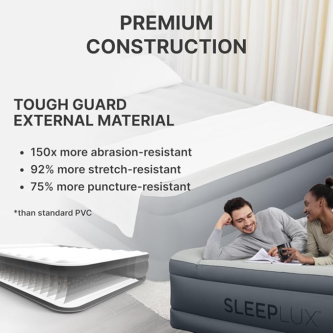 • PREMIUM CONSTRUCTION: Made out of Tough Guard material, our airbeds experience less stretching, punctures and abrasion, while still being lightweight and able to maintain a constant level of comfort and firmness for promoting healthy sleeping postures.