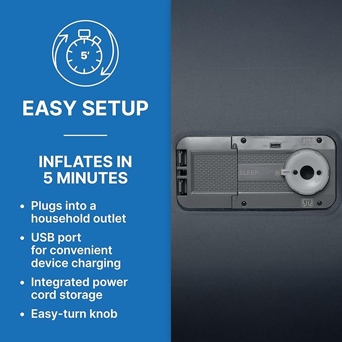 • CHARGE YOUR DEVICE: Our airbeds feature a built-in USB port for convenient charging of electronics. No more struggling to find the nearest outlet. Charge your phone while you sleep with ease.