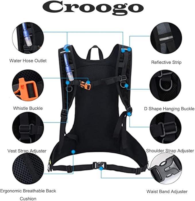Croogo Hydration Backpack with 2L Water Bladder Mountain Bike Rucksack Waterproof Hydration Pack Backpack for Cycling Running
