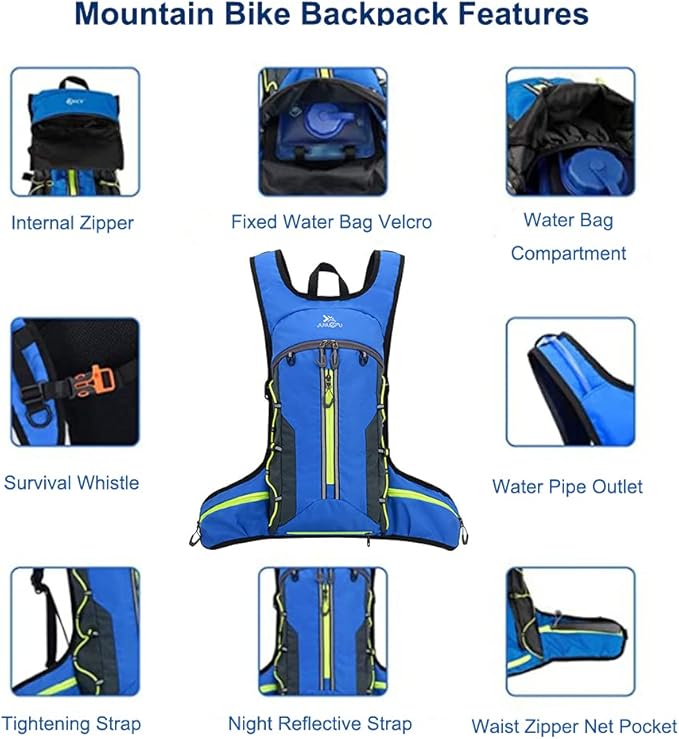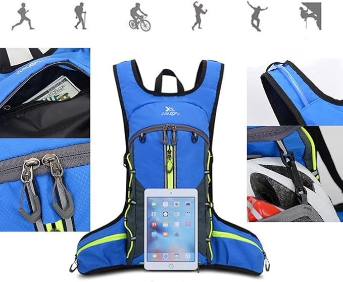 • Best Outdoor Companion: Hydration Backpack is designed great for hiking, running, cycling, camping, trail walking, gym training, climbing or even being used as daily backpack. Integrated backpack cover keeps your pack dry, when not in use, please store the bag in a carry-on storage bag for easy carrying. As shown in the product image on the page.