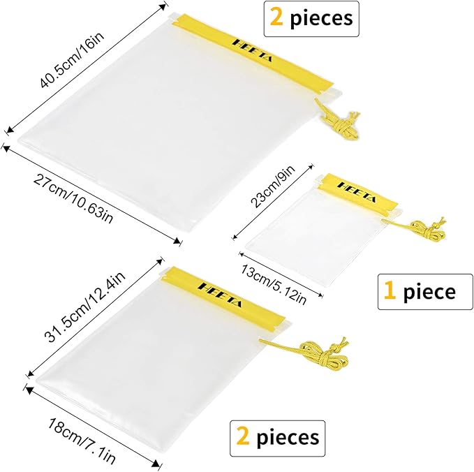 • 5-Pack Clear Waterproof Dry Bag - Water-Resistant: Our dry bag has the overall waterproof capability with PVC material. The Matte and transparent surface allows you to use a cell phone without opening the bag