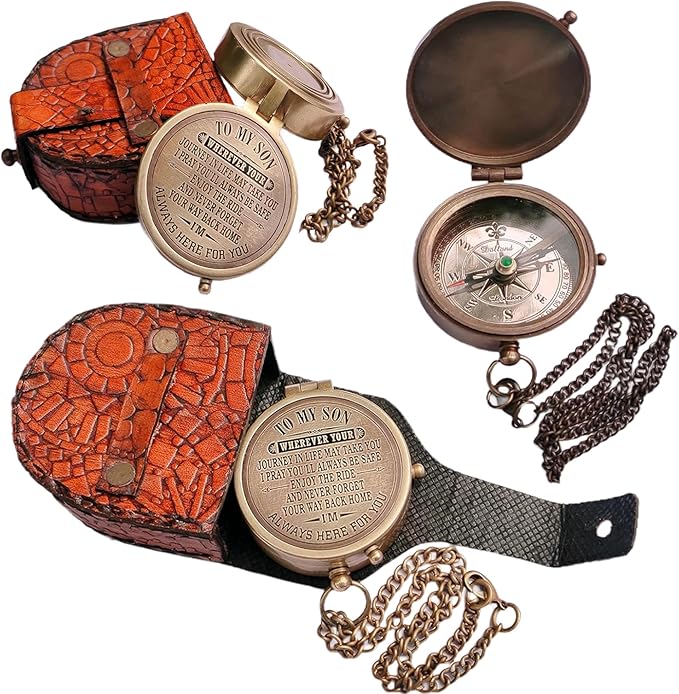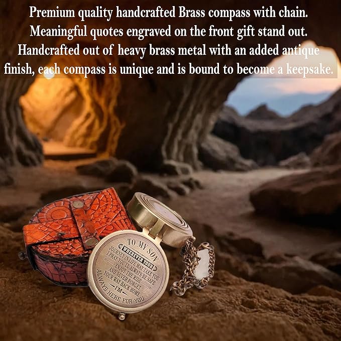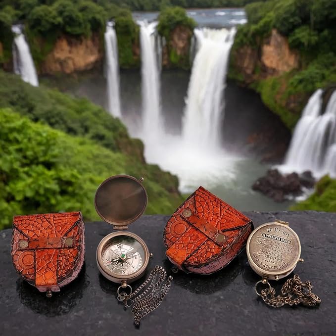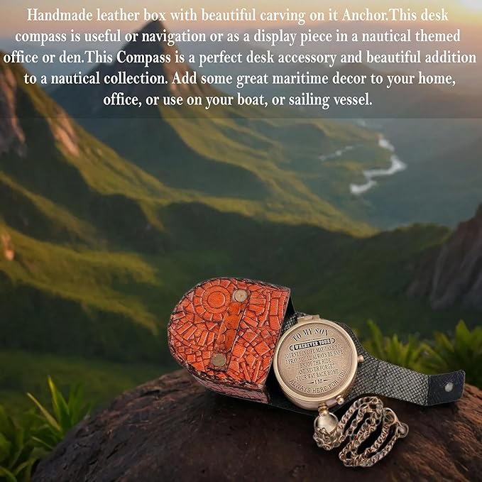 Engraved Brass Compass, Antique Nautical Vintage Directional Magnetic Compass, with Famous Scripture Quote, Baptism Gifts with Leather Case