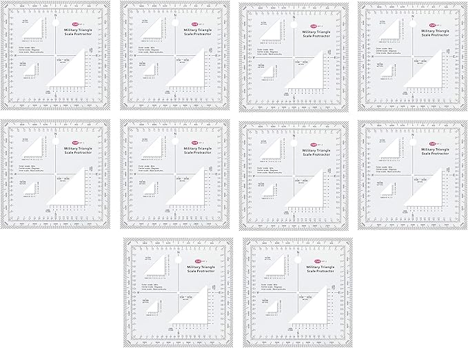 1.2mm Transparent Plastic Military UTM/MGRS Coordinate Scale Map Reading and Land Navigation Topographical Map Scale, Protractor and Grid Coordinate Reader