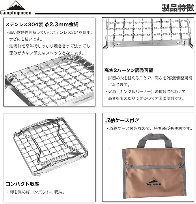 • This over-the-fire camping grill is compact but sturdy. This grill can support 20kg of weight.
