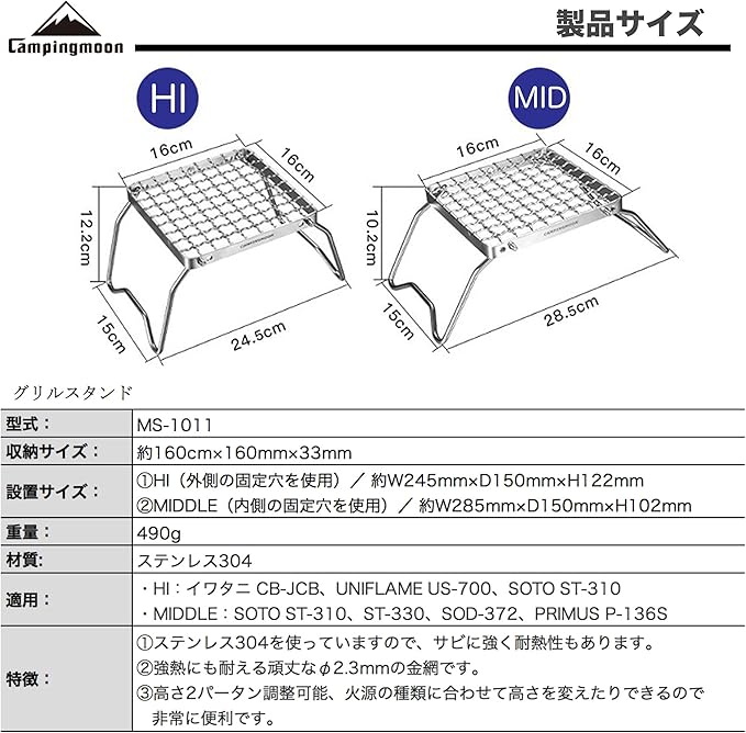 CAMPINGMOON Portable Folding Camping Campfire Grill over Fire Split Stoves 304 Stainless Steel (ZJP 1011)