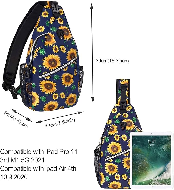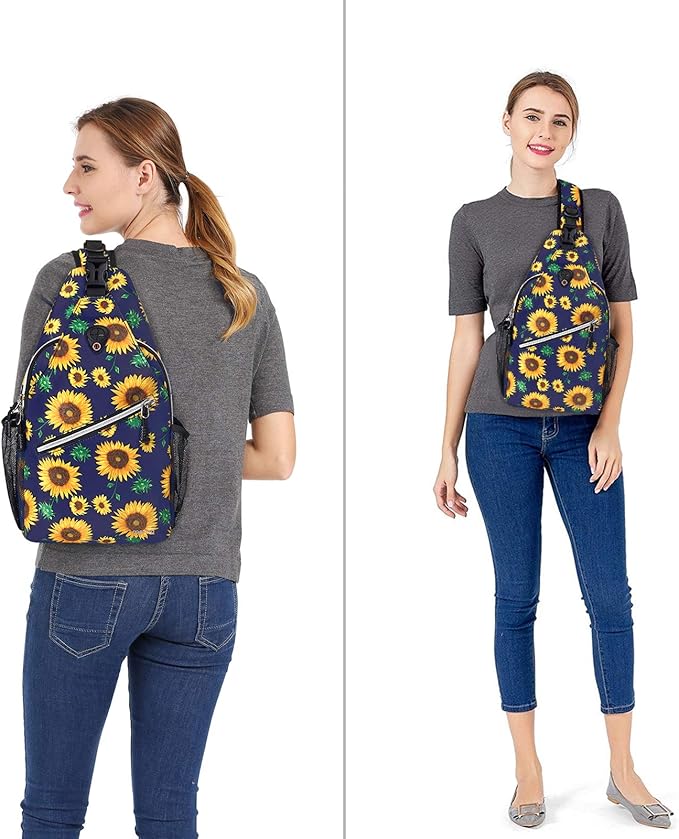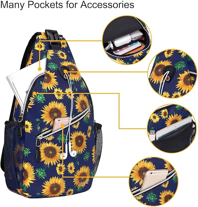 MOSISO Sling Backpack,Travel Hiking Daypack Sunflower Rope Crossbody Shoulder Bag