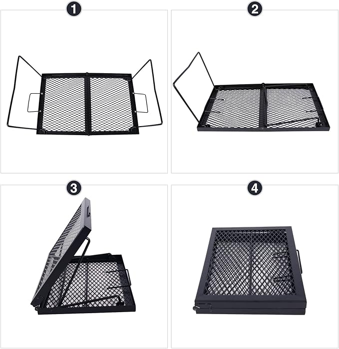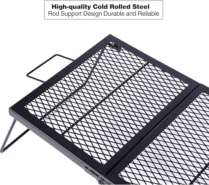 • Material: The heavy-duty folding campfire grill is made of high-quality cold rolled steel, which is durable and reliable in performance