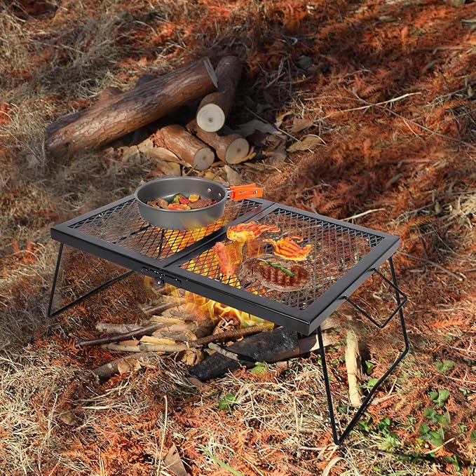 • Practical Campfire Grill: Making it easier to cook a hot meal with this portable outdoor folding grill when you're outdoors. Designed for use with outdoor cookware, frying pans, skillets and pots, for cooking over an open fire. Not suitable for direct contact grilling