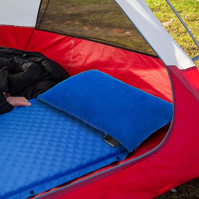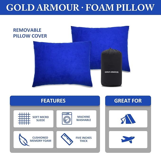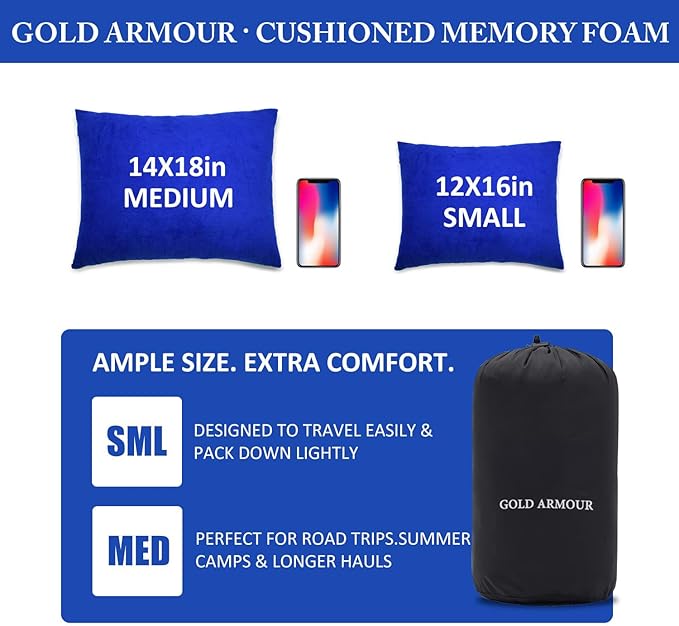 Gold Armour Camping Pillow - Backpacking and Travel Pillow for Sleeping and Traveling - Compressible Memory Foam Travel Pillow - Essential Camping Accessories Gear (Small 12 x 16in, Blue)