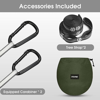 • Easy to Set Up:The Pop-up designed hammock help you to install easily. With the hardware thick tree strap and solid carabiner clips hanging on the tree, you can enjoy your leisure time at once. Zipper works smooth and well placed.