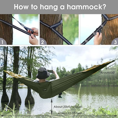 G4Free Large Camping Hammock with Mosquito Net 2 Person Pop-up Parachute Lightweight Hanging Hammocks Tree Straps Swing Bed for Outdoor Backpacking Backyard Hiking