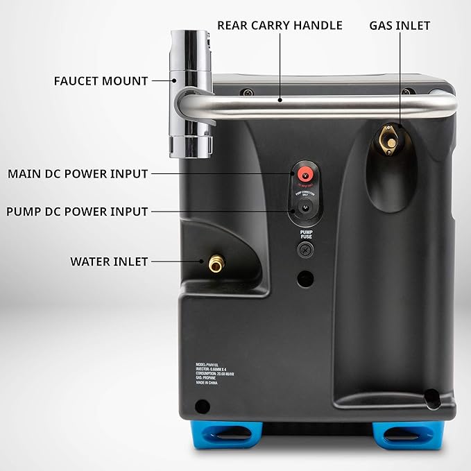 • PORTABLE OUTDOOR SHOWER & HEATER | 2-in-1 Propane-Powered Pump System Allows You to Heat & Dispense Water for Showering, Washing Dishes, Cleaning Hands & Other Indoor & Outdoor Rinsing Tasks | Includes Water Heater, Pump Hose & Plug, Gas Regulator, Faucet Mount, Shower Head, Power Adapters & Carry Case