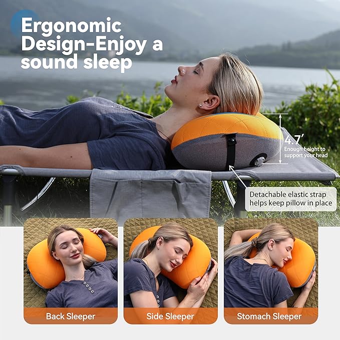 • Multifunctional Use: This handy blow up pillow can be used not only for traveling, trekking, road trip, beach, yoga, but also as a lumbar support for office chair, head rest pillow for recliner and neck pillow for driving. It will be a great addition to your lightweight gear on the go. Take our compact inflatable pillow and enjoy your adventure energetically.