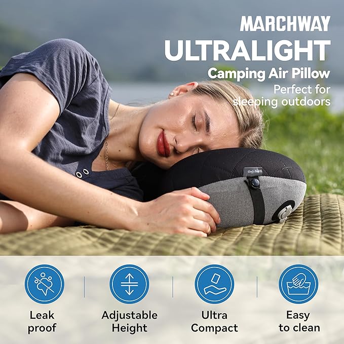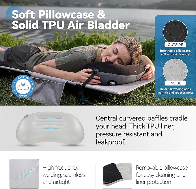 MARCHWAY Ultralight Inflatable Camping Pillow with Soft Washable Cover, Compact Compressible Portable Travel Air Pillow for Outdoor Camp, Sport, Hiking, Backpacking Sleep (Black)
