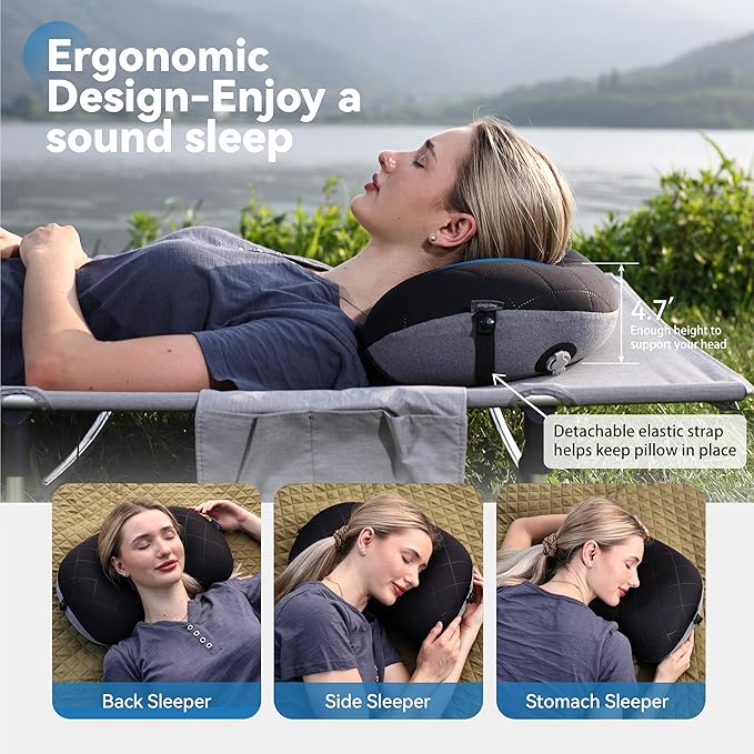 • Multifunctional Use: This handy blow up pillow can be used not only for traveling, trekking, road trip, beach, yoga, but also as a lumbar support for office chair, head rest pillow for recliner and neck pillow for driving. It will be a great addition to your lightweight gear on the go. Take our compact inflatable pillow and enjoy your adventure energetically.