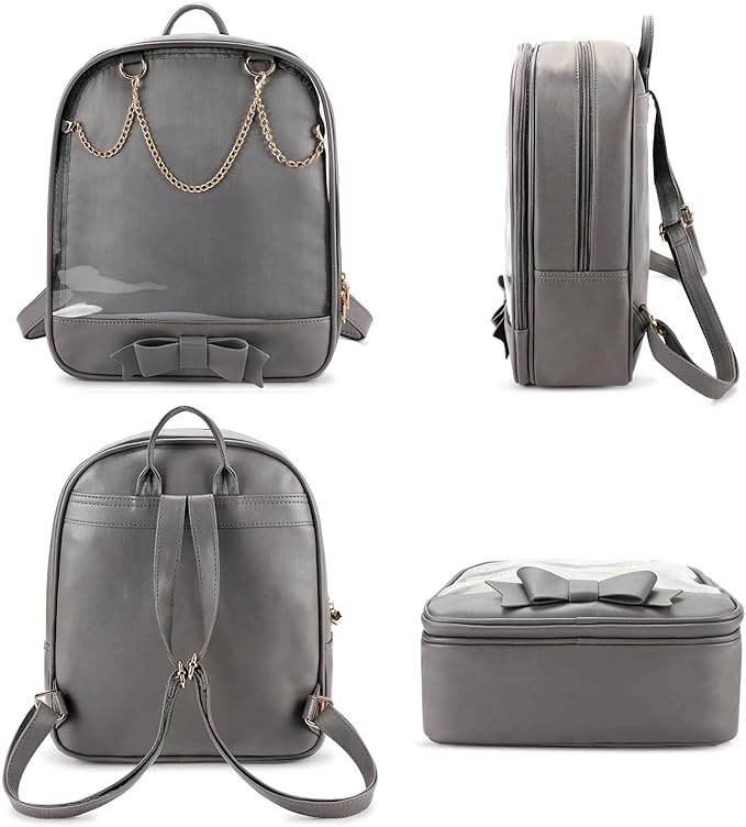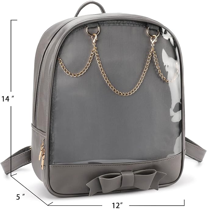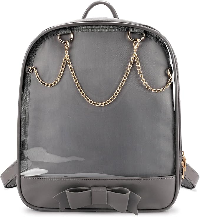 • ❤Structure❤:The ita backpack have a transparent window with glitter.It also have chains and two hooks,you can hang anime stufss on it.One main pocket for some books or ipad.Two inside pocket and a key ring for keys or coins.