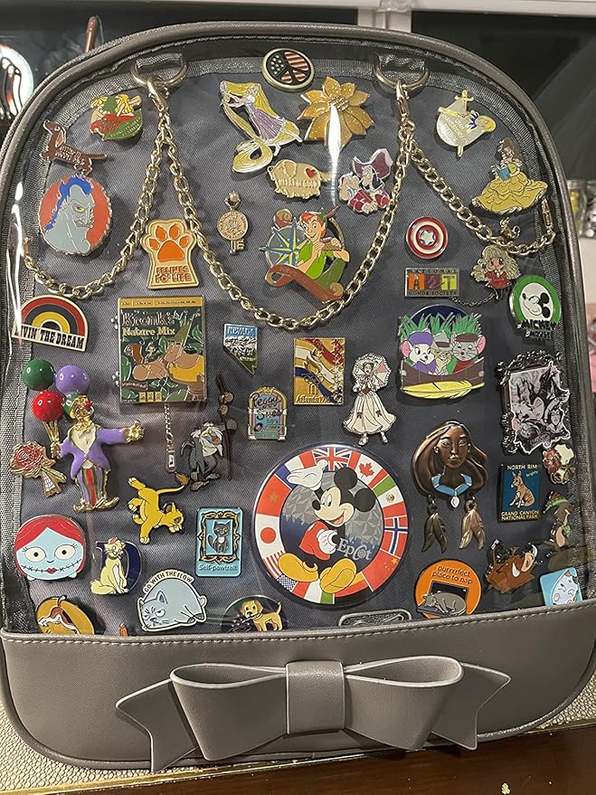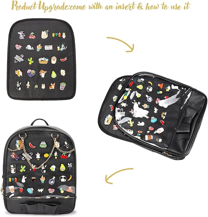 • ❤Pins Display Backpack❤:You can put some anime pins,keychains,badges,brooches in the clear window without the risk of losing them.Glitter makes everything shine.