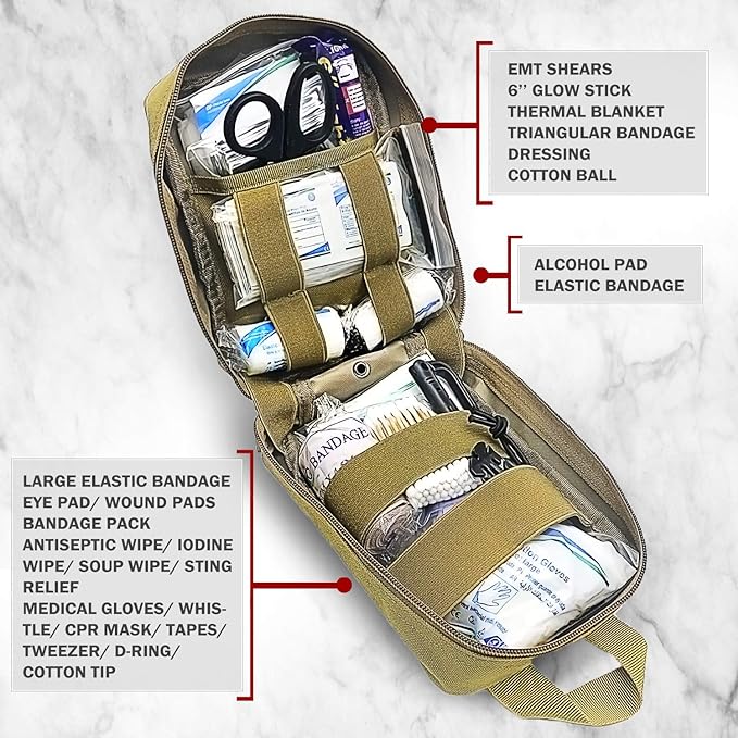 200 Pieces First Aid Kit IFAK Survival Kit Molle System Compatible Pouch, Emergency Kit Gift for Men, Dad, Husband, for Outdoor, Camping, Hunting, Hiking, Home, Earthquake, Disasters