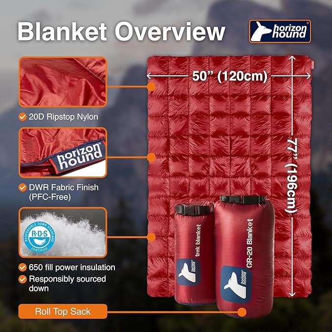Horizon Hound Down Camping Blanket - Outdoor Travel Quilt | Sustainable, Insulated, Lightweight & Warm Gear for Sleep, Camping, Stadium, Hiking & Festivals | Water Resistant, Packable & Compact